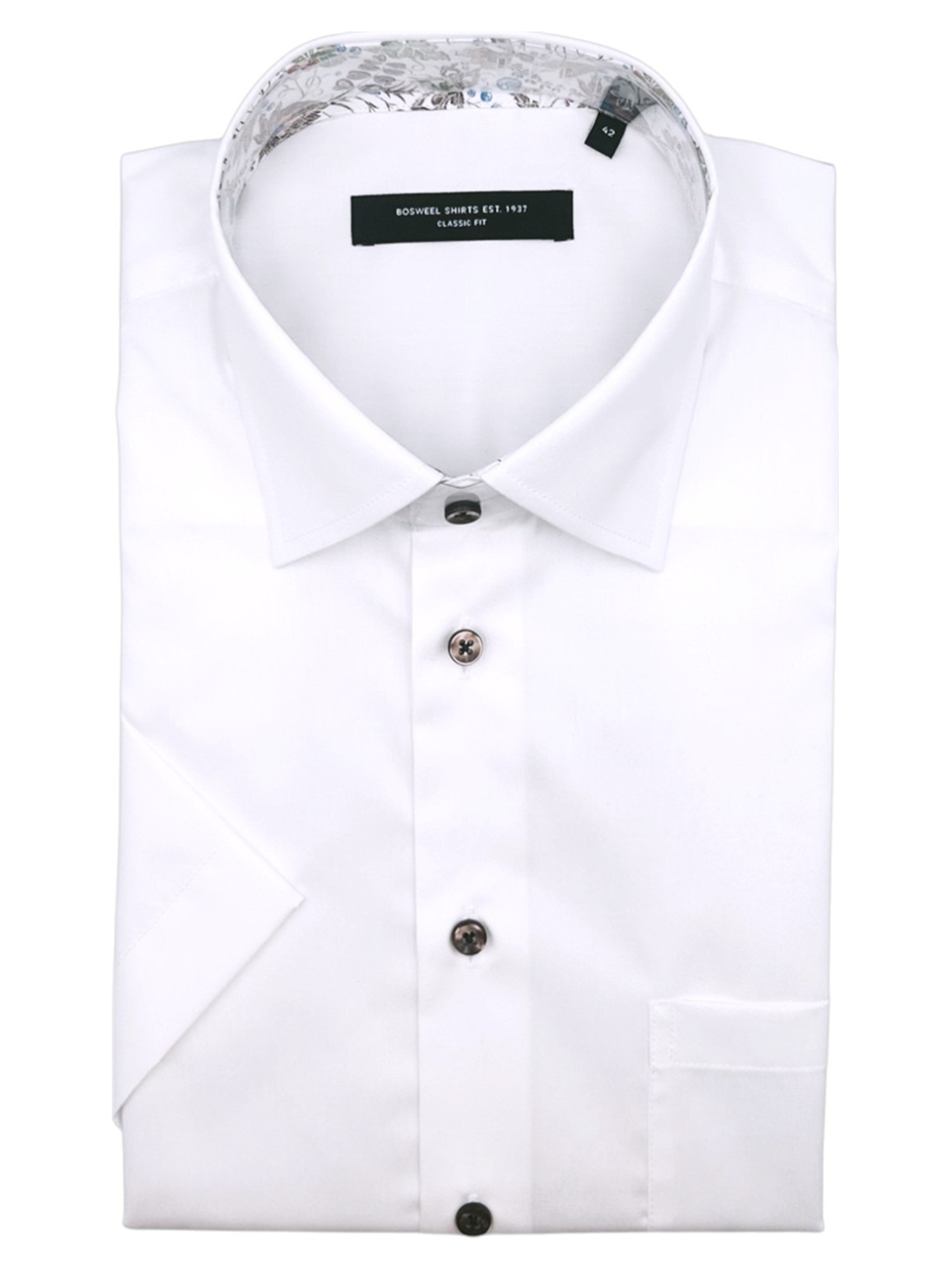 BOSWEEL HVID CLASSIC FIT KORTÆRMET SKJORTE