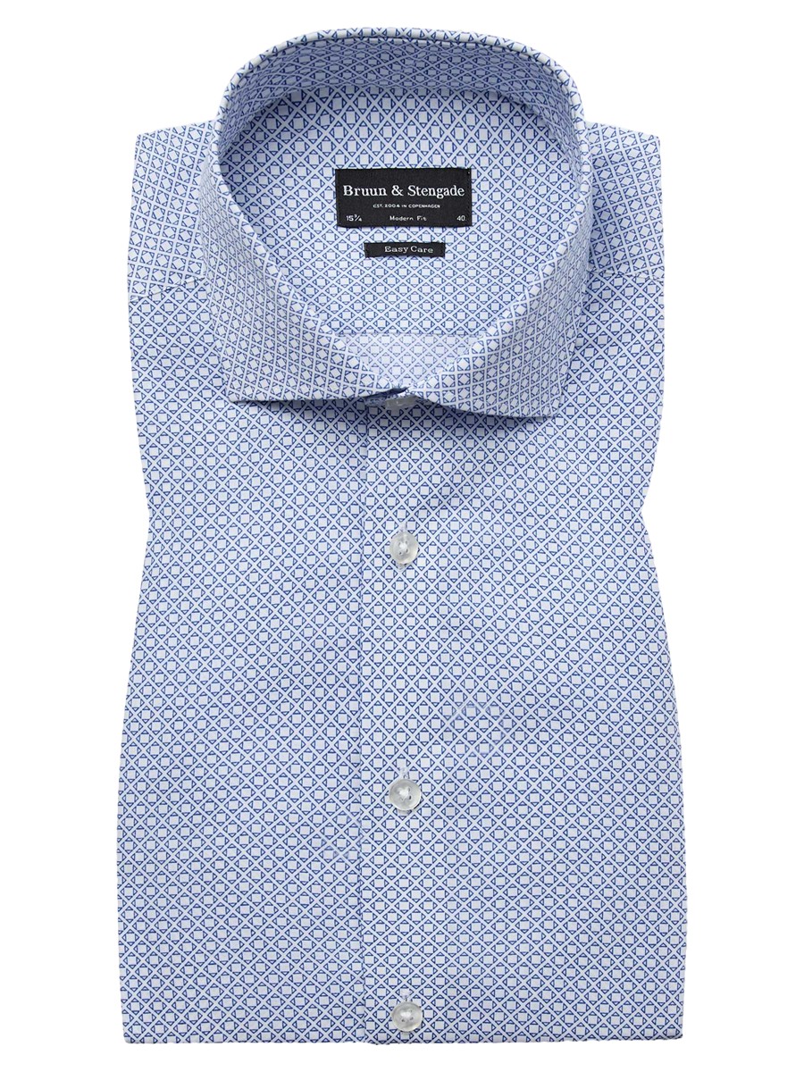 BRUUN & STENGADE BLÅ ENKEL MANCHET MODERN FIT SKJORTE CUTAWAY FLIP
