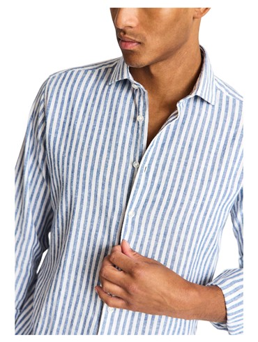 BRUUN & STENGADE BLÅ ENKEL MANCHET MODERN FIT SKJORTE CUTAWAY FLIP