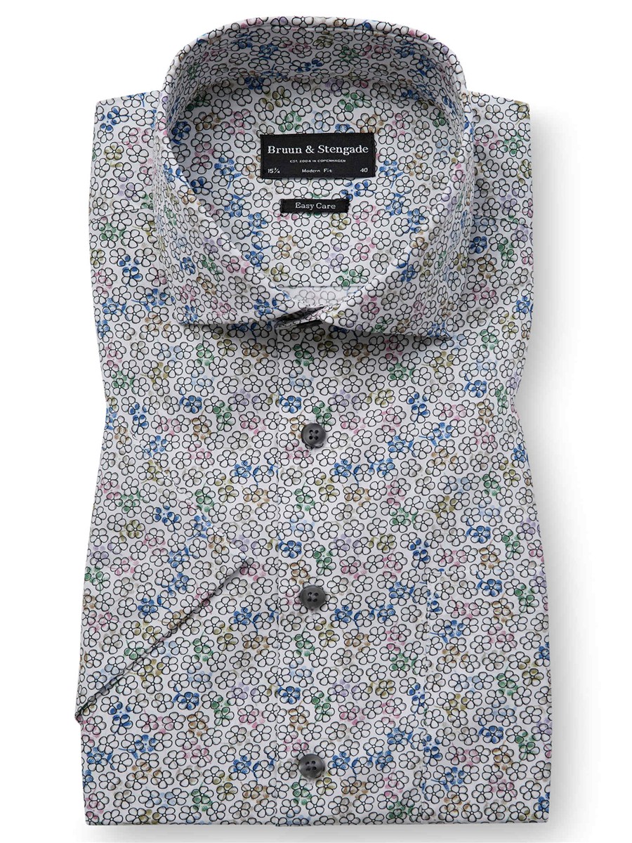 BRUUN & STENGADE HVID MODERN FIT KORTÆRMET SKJORTE CUTAWAY FLIP