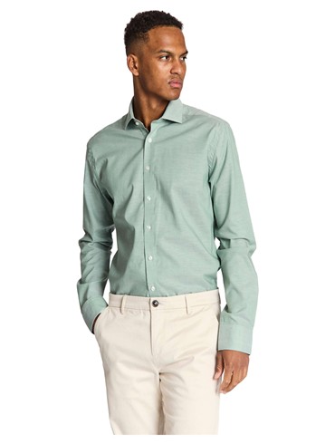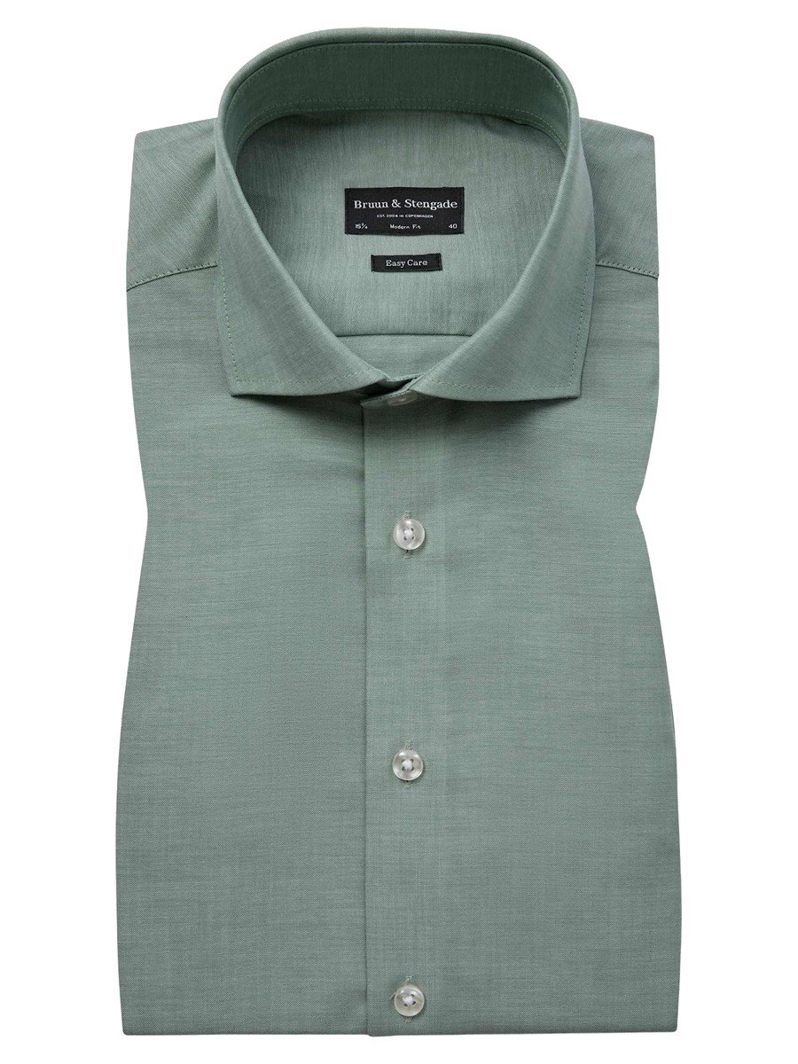BRUUN & STENGADE LYSEGRØN ENKEL MANCHET MODERN FIT SKJORTE CUTAWAY FLIP