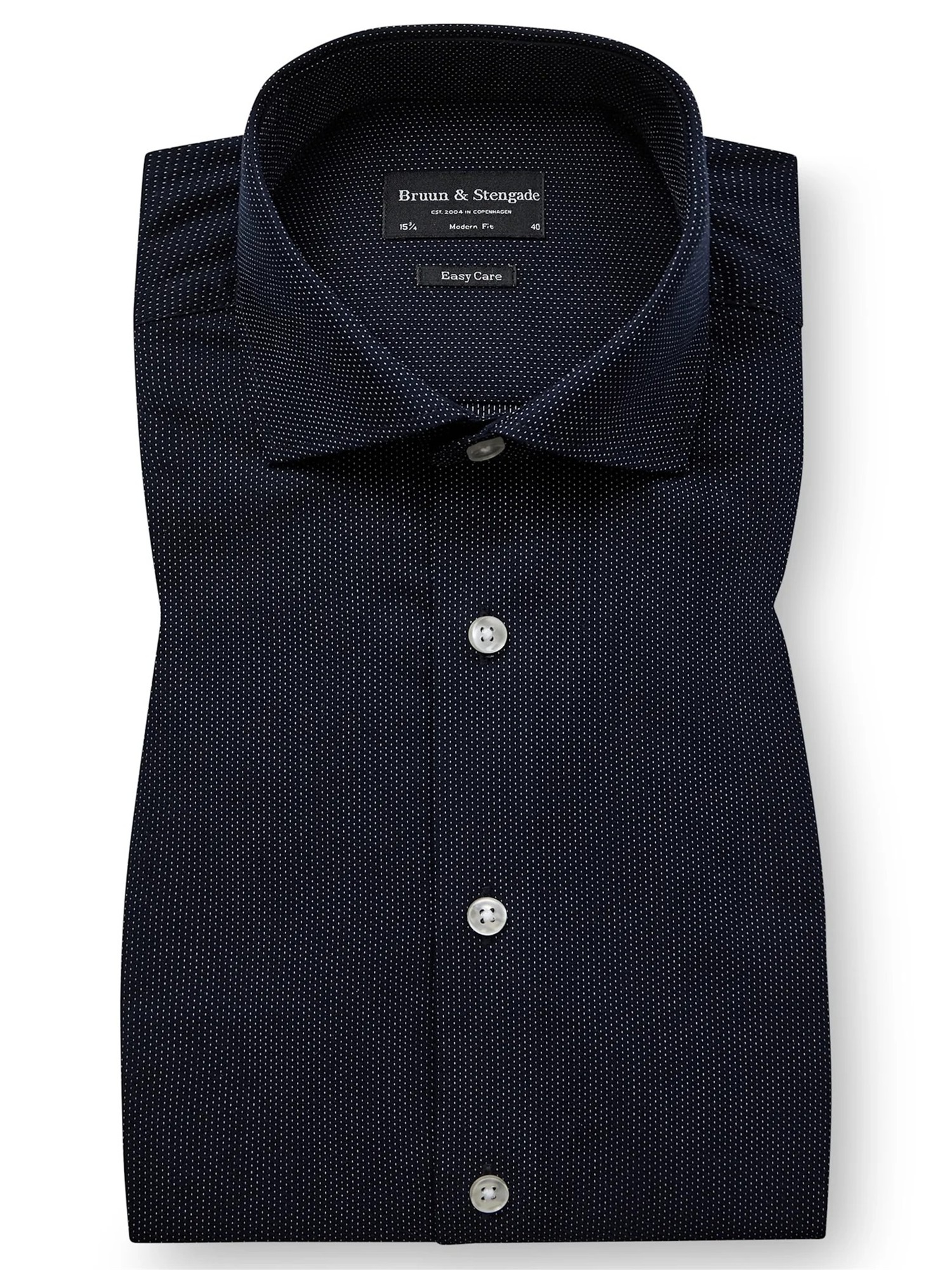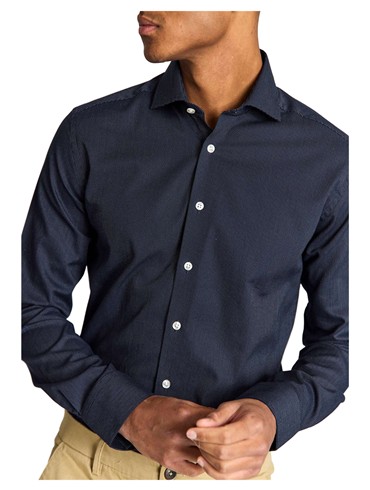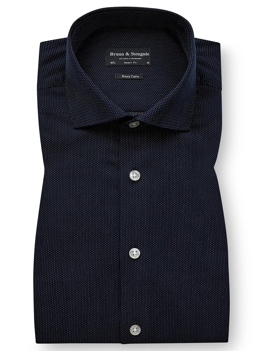BRUUN & STENGADE MØRKEBLÅ ENKEL MANCHET MODERN FIT SKJORTE CUTAWAY FLIP