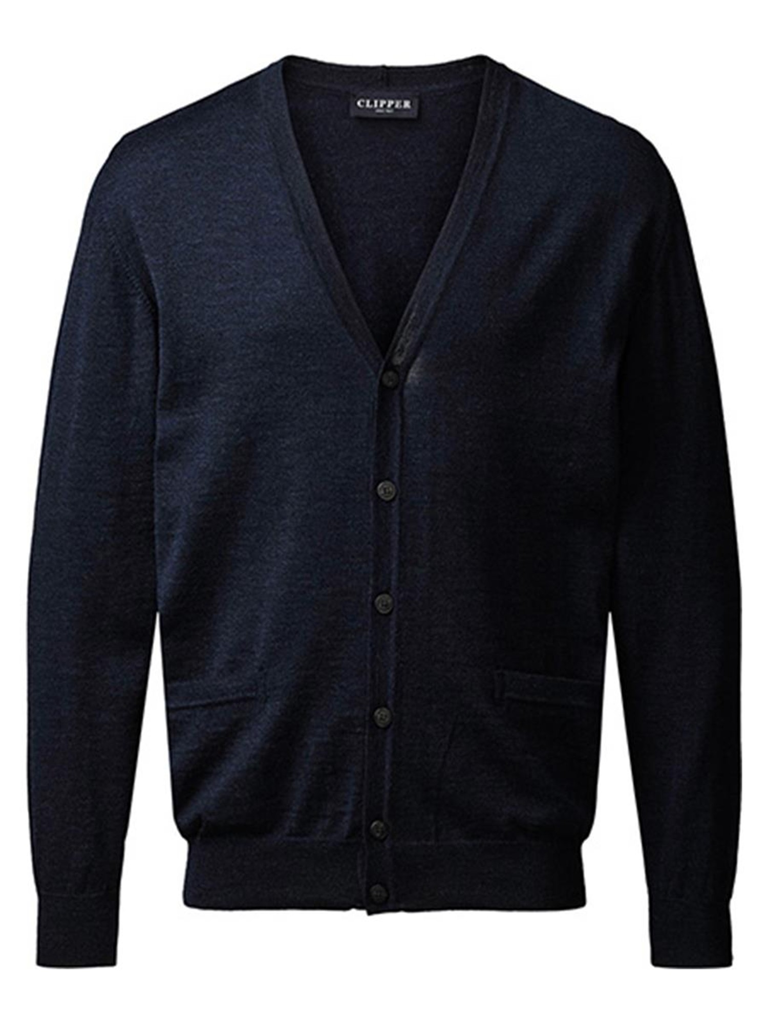 Clipper herrecardigan med V-hals og knapper. Den merceriserede merinould giver pulloveren en forbedret komfort - den føles lækker og har samtidig et luksuriøst look.