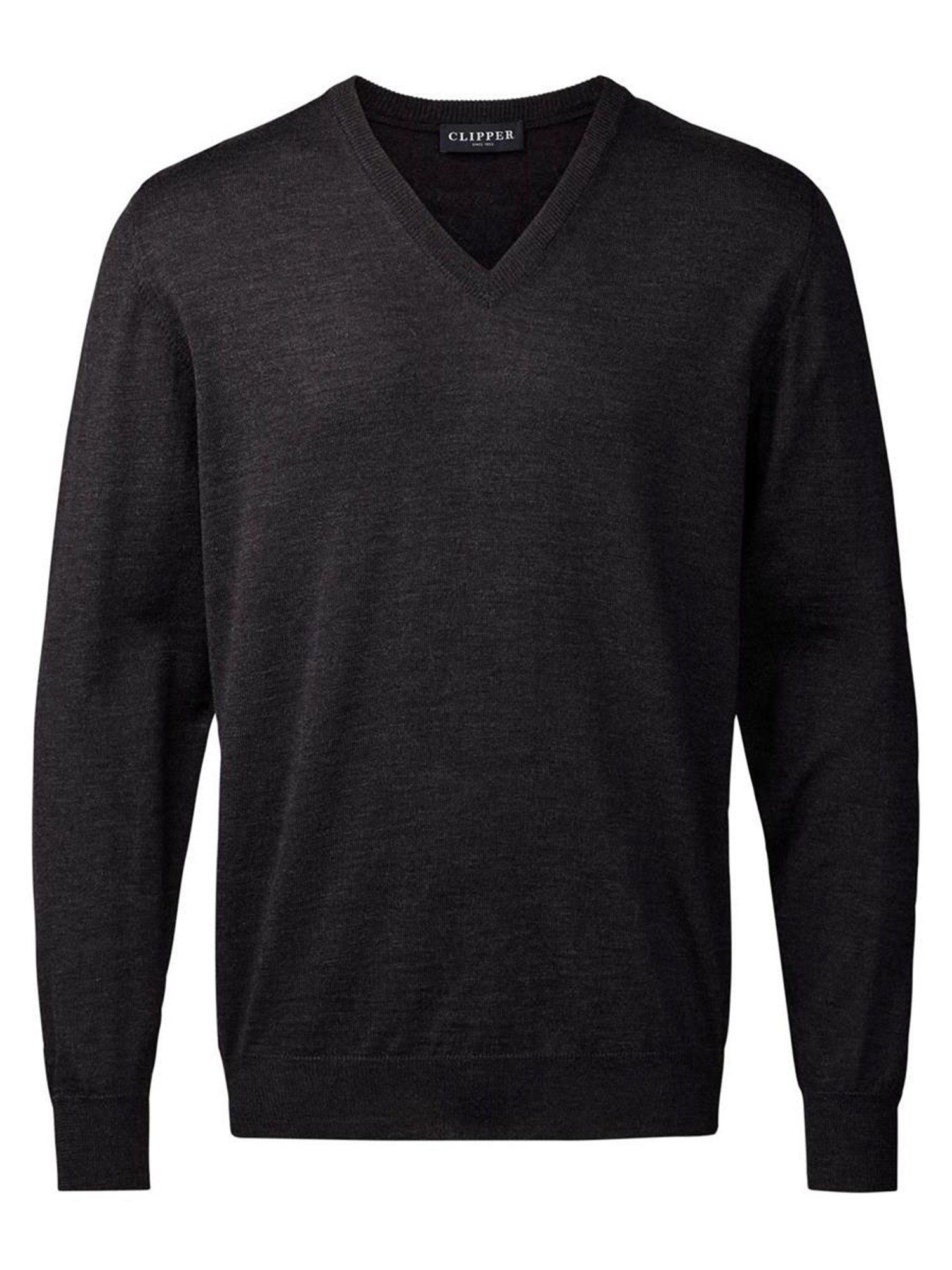 Clipper MILAN herrepullover med V-hals. Den merceriserede merinould giver pulloveren en forbedret komfort og føles lækker samtidig har den et luksuriøst look.