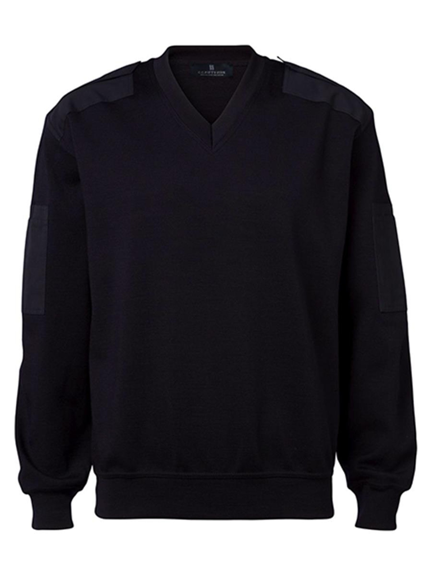 Pullover med v-neck. Dobbelt lag stof ved ærmer og forneden.