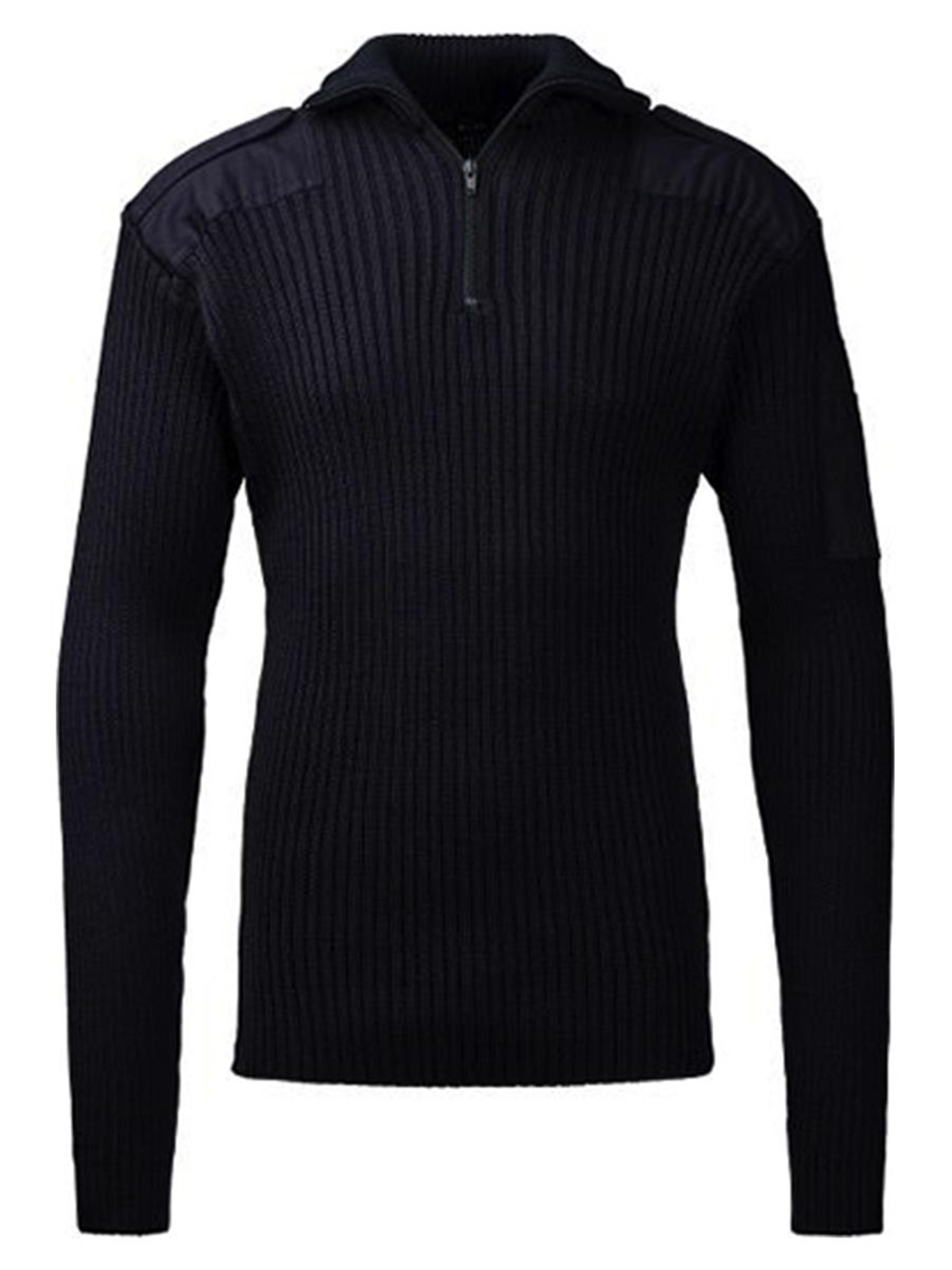 Zip-neck pullover i rib strik. Epauletter i form af twill-stropper på skuldrene.