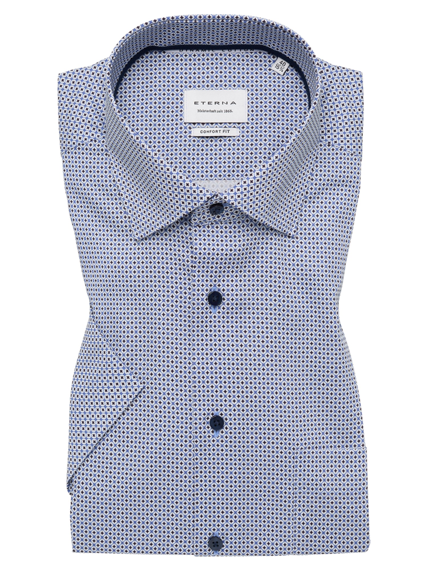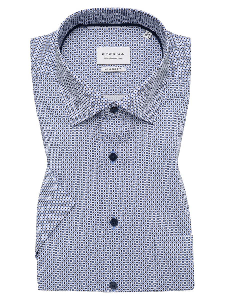 ETERNA BLÅ COMFORT FIT KORTÆRMET SKJORTE ALMINDELIG FLIP