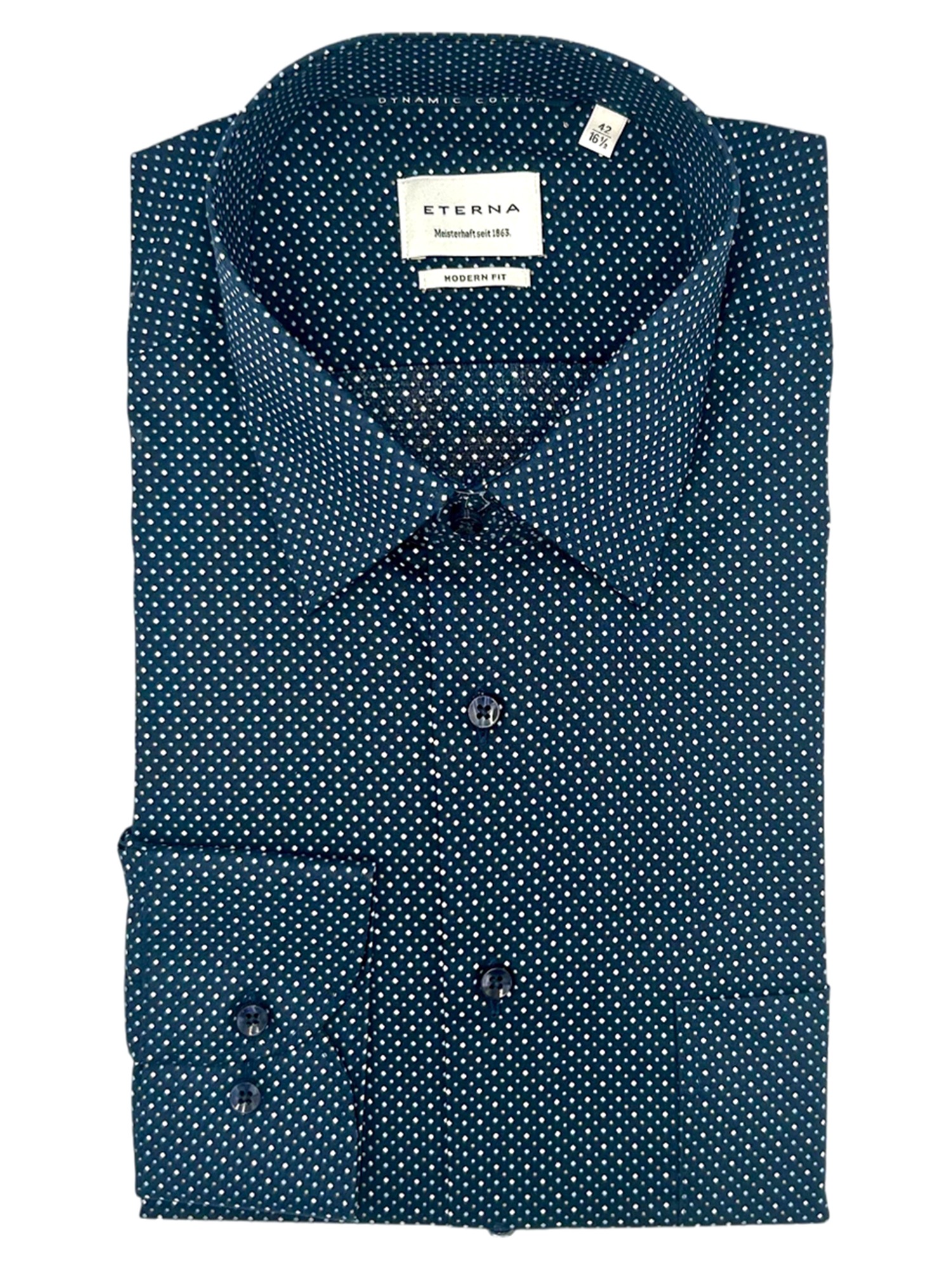Eterna har siden de blev grundlagt i 1863 været kendt for deres gode kvalitet og ikke mindst deres ekceptionelle kvalitet. Eterna anvender bomuld og certificerede garner i deres skjorter og er derfor strygefrie. Alle Eternas skjorter er certificeret og produceret under de højeste Oeko-Tex standarder i Europa. Det betyder at samtlige skjorter er testet fri for en lang række giftige og miljøskadelige kemikalier. Eterna producerer deres skjorter i forskellige pasformer; Super Slim Fit, Slim Fit, Modern Fit og Comfort Fit - hertil fåes nogle skjorter med variende armlængde. Hos Bygholm Menswear har vi et bredt udvalg af Eterna til de allerbedste priser.