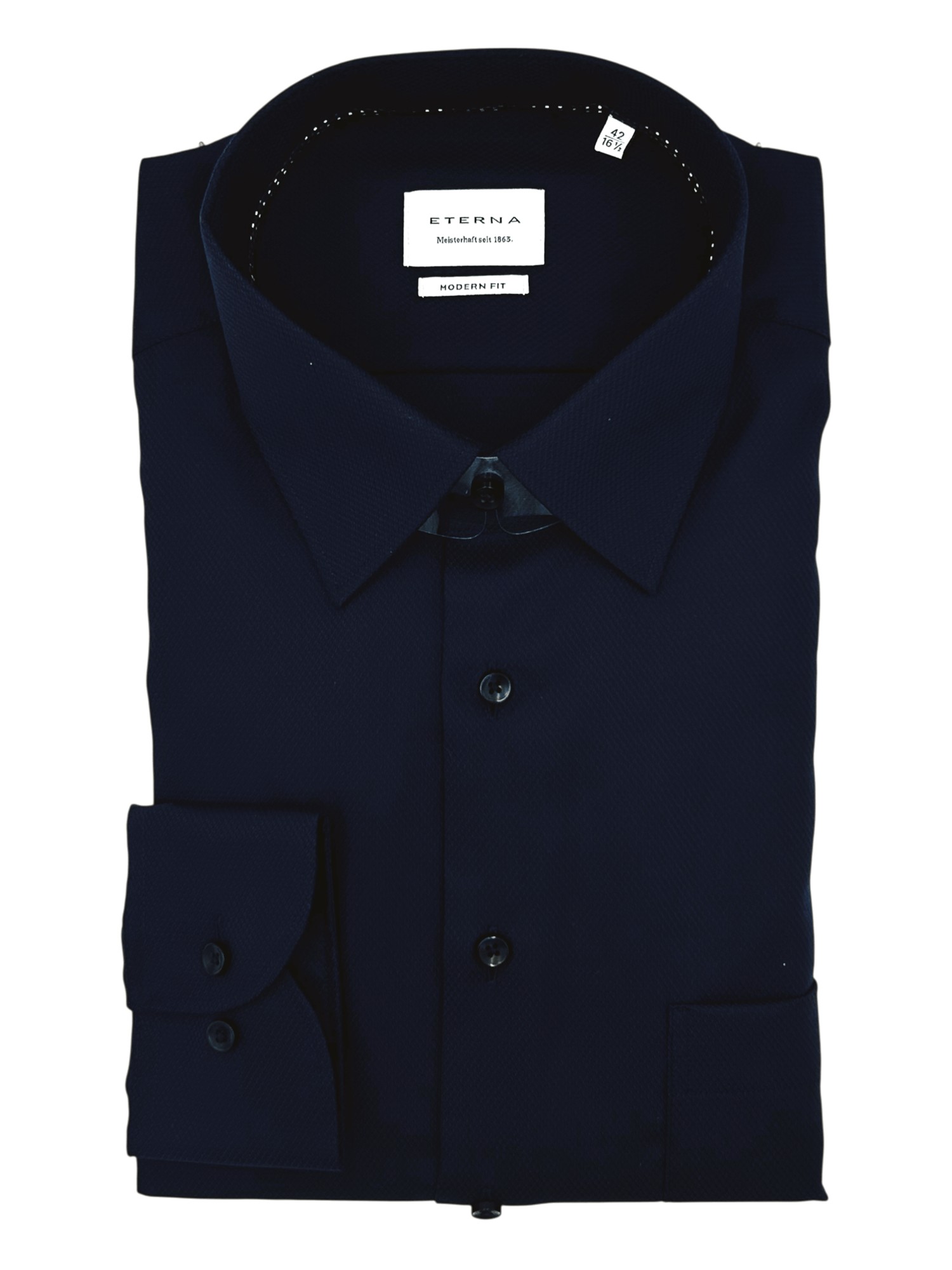 Eterna har siden de blev grundlagt i 1863 været kendt for deres gode kvalitet og ikke mindst deres ekceptionelle kvalitet. Eterna anvender bomuld og certificerede garner i deres skjorter og er derfor strygefrie. Alle Eternas skjorter er certificeret og produceret under de højeste Oeko-Tex standarder i Europa. Det betyder at samtlige skjorter er testet fri for en lang række giftige og miljøskadelige kemikalier. Eterna producerer deres skjorter i forskellige pasformer; Super Slim Fit, Slim Fit, Modern Fit og Comfort Fit - hertil fåes nogle skjorter med variende armlængde. Hos Bygholm Menswear har vi et bredt udvalg af Eterna til de allerbedste priser.