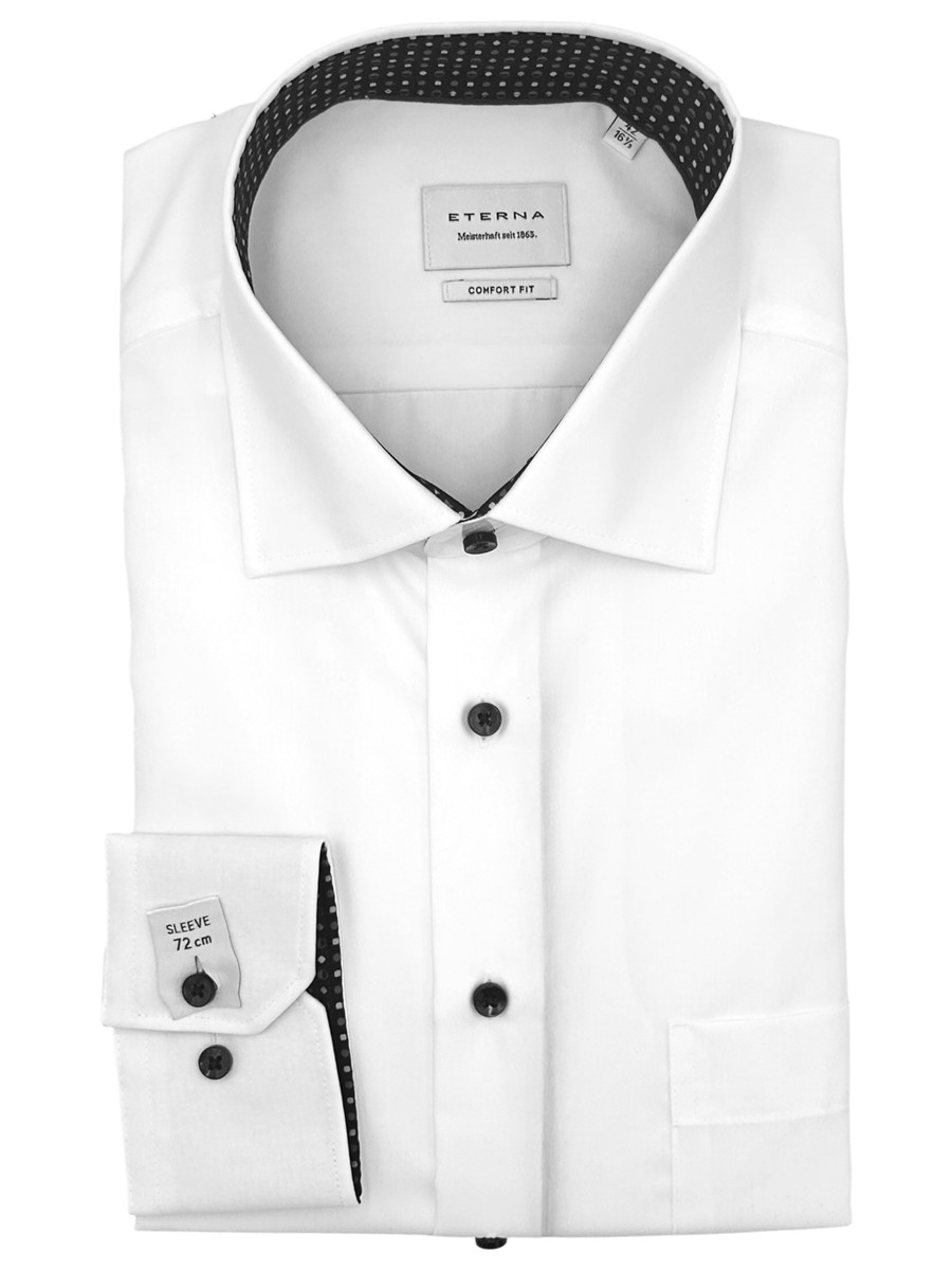 Eterna har siden de blev grundlagt i 1863 været kendt for deres gode kvalitet og ikke mindst deres ekceptionelle kvalitet. Eterna anvender bomuld og certificerede garner i deres skjorter og er derfor strygefrie. Alle Eternas skjorter er certificeret og produceret under de højeste Oeko-Tex standarder i Europa. Det betyder at samtlige skjorter er testet fri for en lang række giftige og miljøskadelige kemikalier. Eterna producerer deres skjorter i forskellige pasformer; Super Slim Fit, Slim Fit, Modern Fit og Comfort Fit - hertil fåes nogle skjorter med variende armlængde. Hos Bygholm Menswear har vi et bredt udvalg af Eterna til de allerbedste priser.