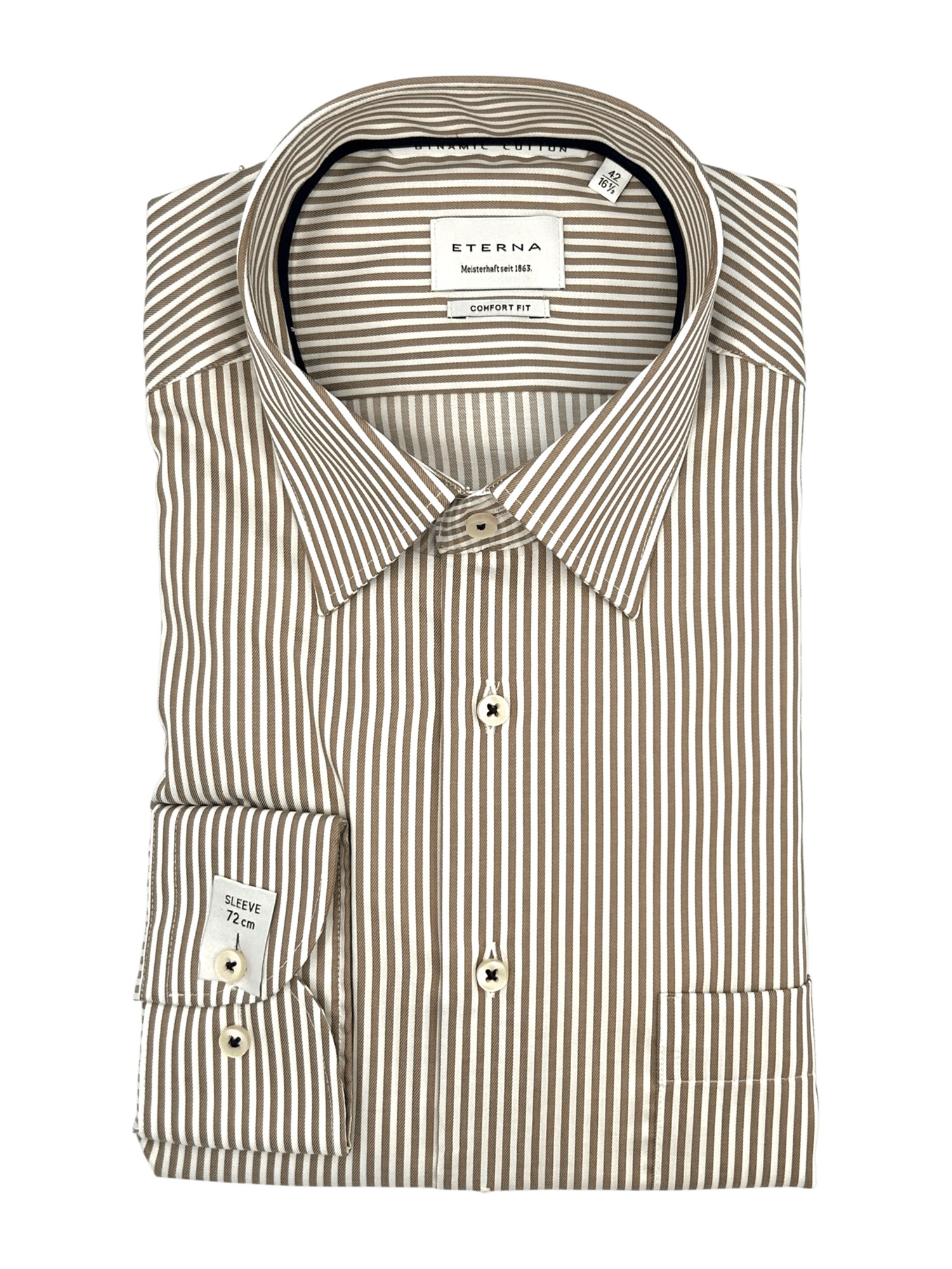 Eterna har siden de blev grundlagt i 1863 været kendt for deres gode kvalitet og ikke mindst deres ekceptionelle kvalitet. Eterna anvender bomuld og certificerede garner i deres skjorter og er derfor strygefrie. Alle Eternas skjorter er certificeret og produceret under de højeste Oeko-Tex standarder i Europa. Det betyder at samtlige skjorter er testet fri for en lang række giftige og miljøskadelige kemikalier. Eterna producerer deres skjorter i forskellige pasformer; Super Slim Fit, Slim Fit, Modern Fit og Comfort Fit - hertil fåes nogle skjorter med variende armlængde. Hos Bygholm Menswear har vi et bredt udvalg af Eterna til de allerbedste priser.