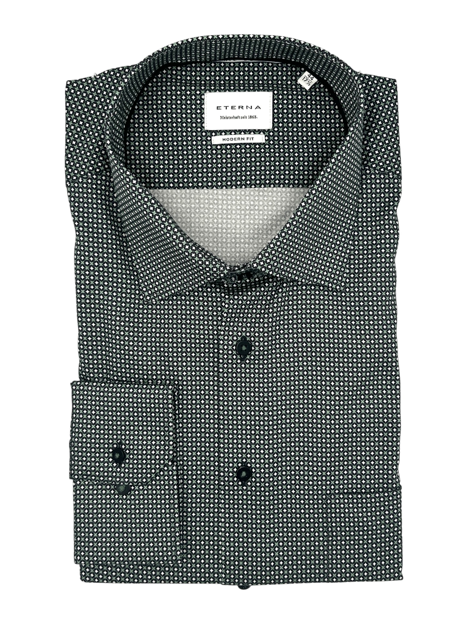 Eterna har siden de blev grundlagt i 1863 været kendt for deres gode kvalitet og ikke mindst deres ekceptionelle kvalitet. Eterna anvender bomuld og certificerede garner i deres skjorter og er derfor strygefrie. Alle Eternas skjorter er certificeret og produceret under de højeste Oeko-Tex standarder i Europa. Det betyder at samtlige skjorter er testet fri for en lang række giftige og miljøskadelige kemikalier. Eterna producerer deres skjorter i forskellige pasformer; Super Slim Fit, Slim Fit, Modern Fit og Comfort Fit - hertil fåes nogle skjorter med variende armlængde. Hos Bygholm Menswear har vi et bredt udvalg af Eterna til de allerbedste priser.