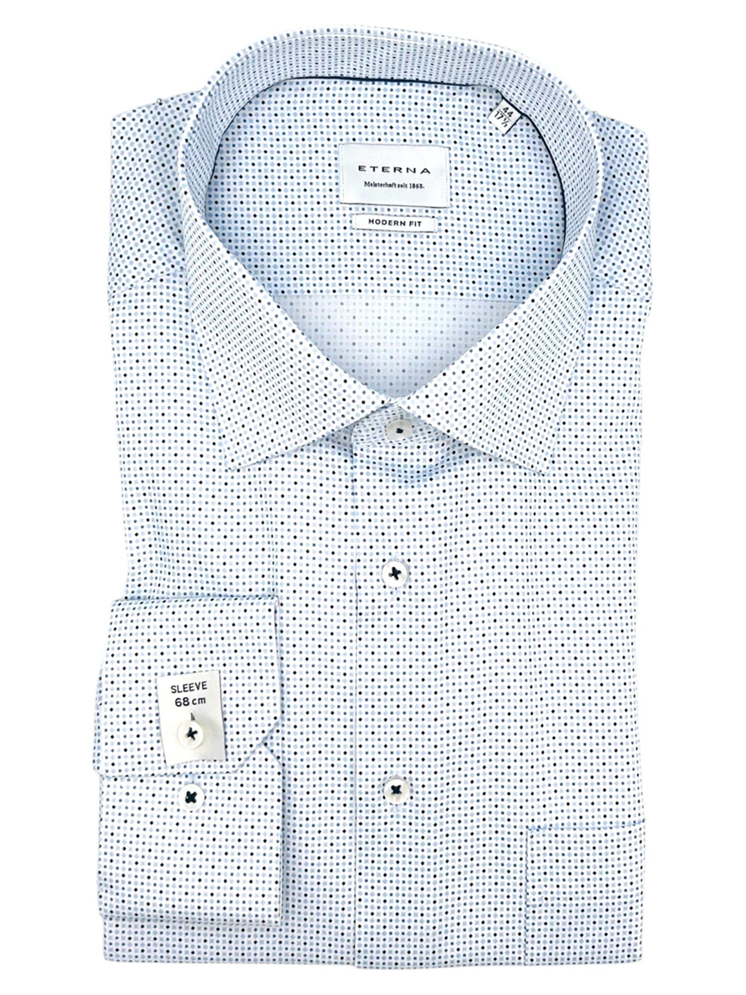 Eterna har siden de blev grundlagt i 1863 været kendt for deres gode kvalitet og ikke mindst deres ekceptionelle kvalitet. Eterna anvender bomuld og certificerede garner i deres skjorter og er derfor strygefrie. Alle Eternas skjorter er certificeret og produceret under de højeste Oeko-Tex standarder i Europa. Det betyder at samtlige skjorter er testet fri for en lang række giftige og miljøskadelige kemikalier. Eterna producerer deres skjorter i forskellige pasformer; Super Slim Fit, Slim Fit, Modern Fit og Comfort Fit - hertil fåes nogle skjorter med variende armlængde. Hos Bygholm Menswear har vi et bredt udvalg af Eterna til de allerbedste priser.