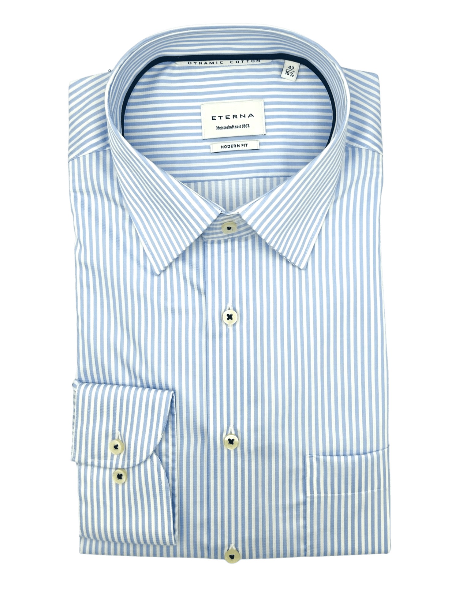 Eterna har siden de blev grundlagt i 1863 været kendt for deres gode kvalitet og ikke mindst deres ekceptionelle kvalitet. Eterna anvender bomuld og certificerede garner i deres skjorter og er derfor strygefrie. Alle Eternas skjorter er certificeret og produceret under de højeste Oeko-Tex standarder i Europa. Det betyder at samtlige skjorter er testet fri for en lang række giftige og miljøskadelige kemikalier. Eterna producerer deres skjorter i forskellige pasformer; Super Slim Fit, Slim Fit, Modern Fit og Comfort Fit - hertil fåes nogle skjorter med variende armlængde. Hos Bygholm Menswear har vi et bredt udvalg af Eterna til de allerbedste priser.