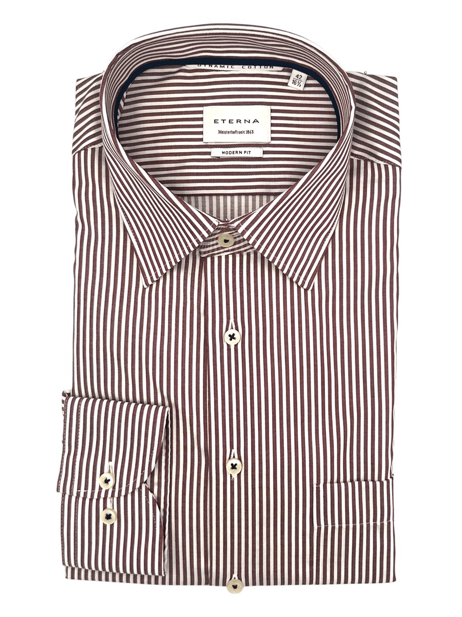 Eterna har siden de blev grundlagt i 1863 været kendt for deres gode kvalitet og ikke mindst deres ekceptionelle kvalitet. Eterna anvender bomuld og certificerede garner i deres skjorter og er derfor strygefrie. Alle Eternas skjorter er certificeret og produceret under de højeste Oeko-Tex standarder i Europa. Det betyder at samtlige skjorter er testet fri for en lang række giftige og miljøskadelige kemikalier. Eterna producerer deres skjorter i forskellige pasformer; Super Slim Fit, Slim Fit, Modern Fit og Comfort Fit - hertil fåes nogle skjorter med variende armlængde. Hos Bygholm Menswear har vi et bredt udvalg af Eterna til de allerbedste priser.