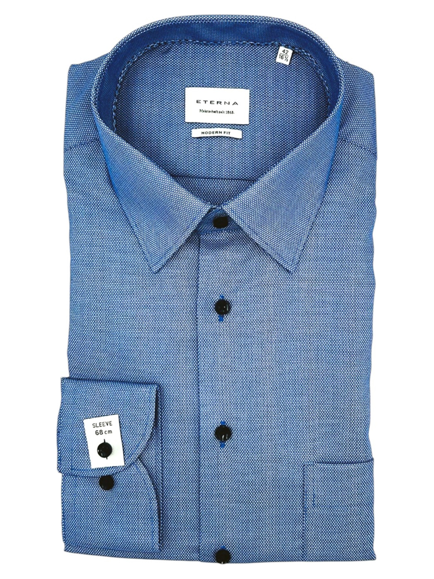 Eterna har siden de blev grundlagt i 1863 været kendt for deres gode kvalitet og ikke mindst deres ekceptionelle kvalitet. Eterna anvender bomuld og certificerede garner i deres skjorter og er derfor strygefrie. Alle Eternas skjorter er certificeret og produceret under de højeste Oeko-Tex standarder i Europa. Det betyder at samtlige skjorter er testet fri for en lang række giftige og miljøskadelige kemikalier. Eterna producerer deres skjorter i forskellige pasformer; Super Slim Fit, Slim Fit, Modern Fit og Comfort Fit - hertil fåes nogle skjorter med variende armlængde. Hos Bygholm Menswear har vi et bredt udvalg af Eterna til de allerbedste priser.