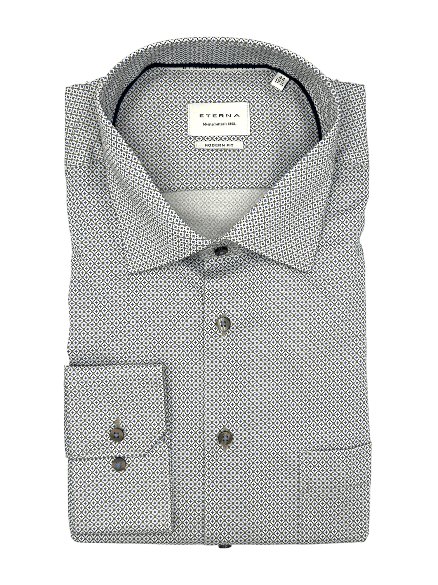 Eterna har siden de blev grundlagt i 1863 været kendt for deres gode kvalitet og ikke mindst deres ekceptionelle kvalitet. Eterna anvender bomuld og certificerede garner i deres skjorter og er derfor strygefrie. Alle Eternas skjorter er certificeret og produceret under de højeste Oeko-Tex standarder i Europa. Det betyder at samtlige skjorter er testet fri for en lang række giftige og miljøskadelige kemikalier. Eterna producerer deres skjorter i forskellige pasformer; Super Slim Fit, Slim Fit, Modern Fit og Comfort Fit - hertil fåes nogle skjorter med variende armlængde. Hos Bygholm Menswear har vi et bredt udvalg af Eterna til de allerbedste priser.