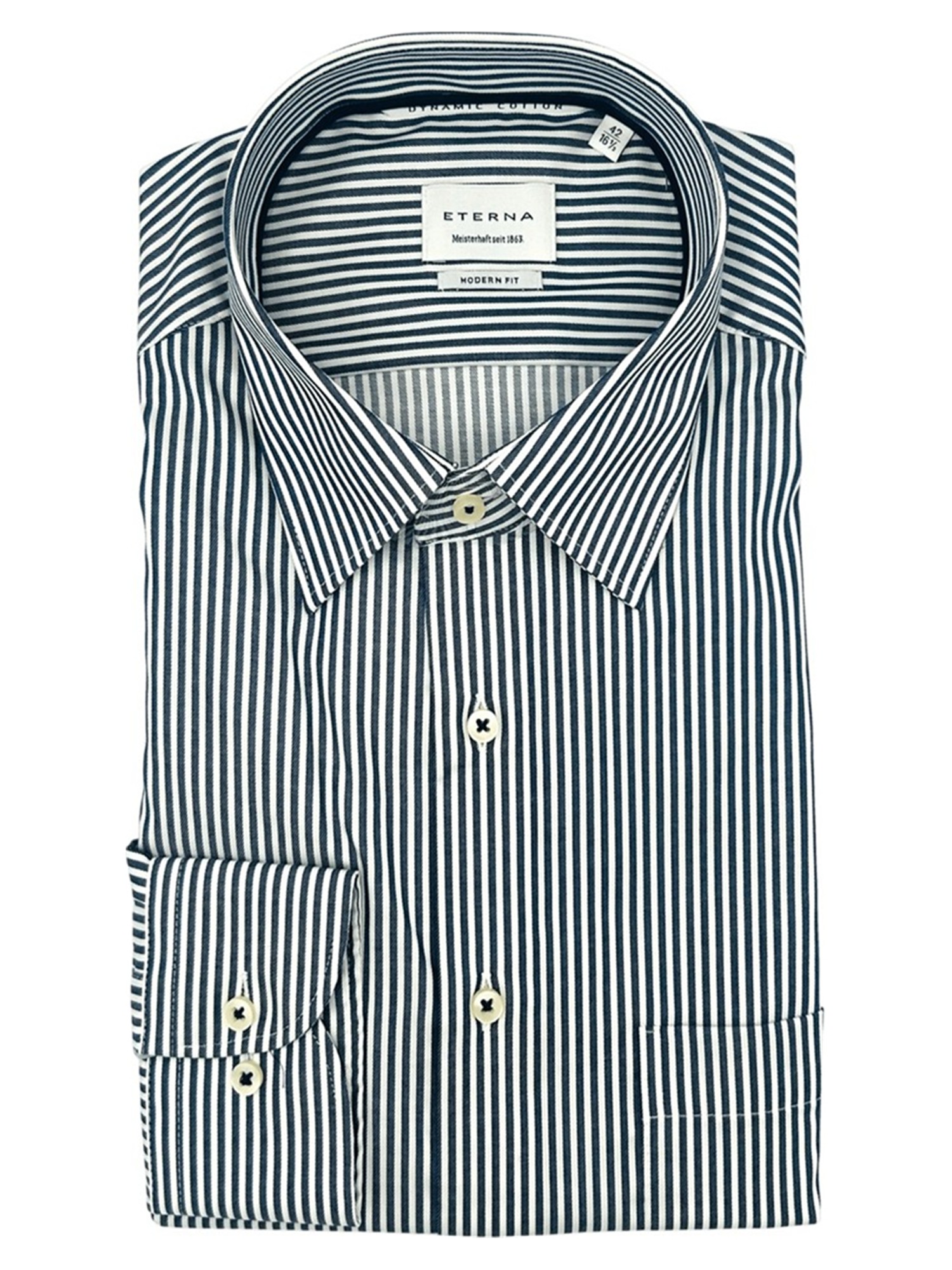 Eterna har siden de blev grundlagt i 1863 været kendt for deres gode kvalitet og ikke mindst deres ekceptionelle kvalitet. Eterna anvender bomuld og certificerede garner i deres skjorter og er derfor strygefrie. Alle Eternas skjorter er certificeret og produceret under de højeste Oeko-Tex standarder i Europa. Det betyder at samtlige skjorter er testet fri for en lang række giftige og miljøskadelige kemikalier. Eterna producerer deres skjorter i forskellige pasformer; Super Slim Fit, Slim Fit, Modern Fit og Comfort Fit - hertil fåes nogle skjorter med variende armlængde. Hos Bygholm Menswear har vi et bredt udvalg af Eterna til de allerbedste priser.