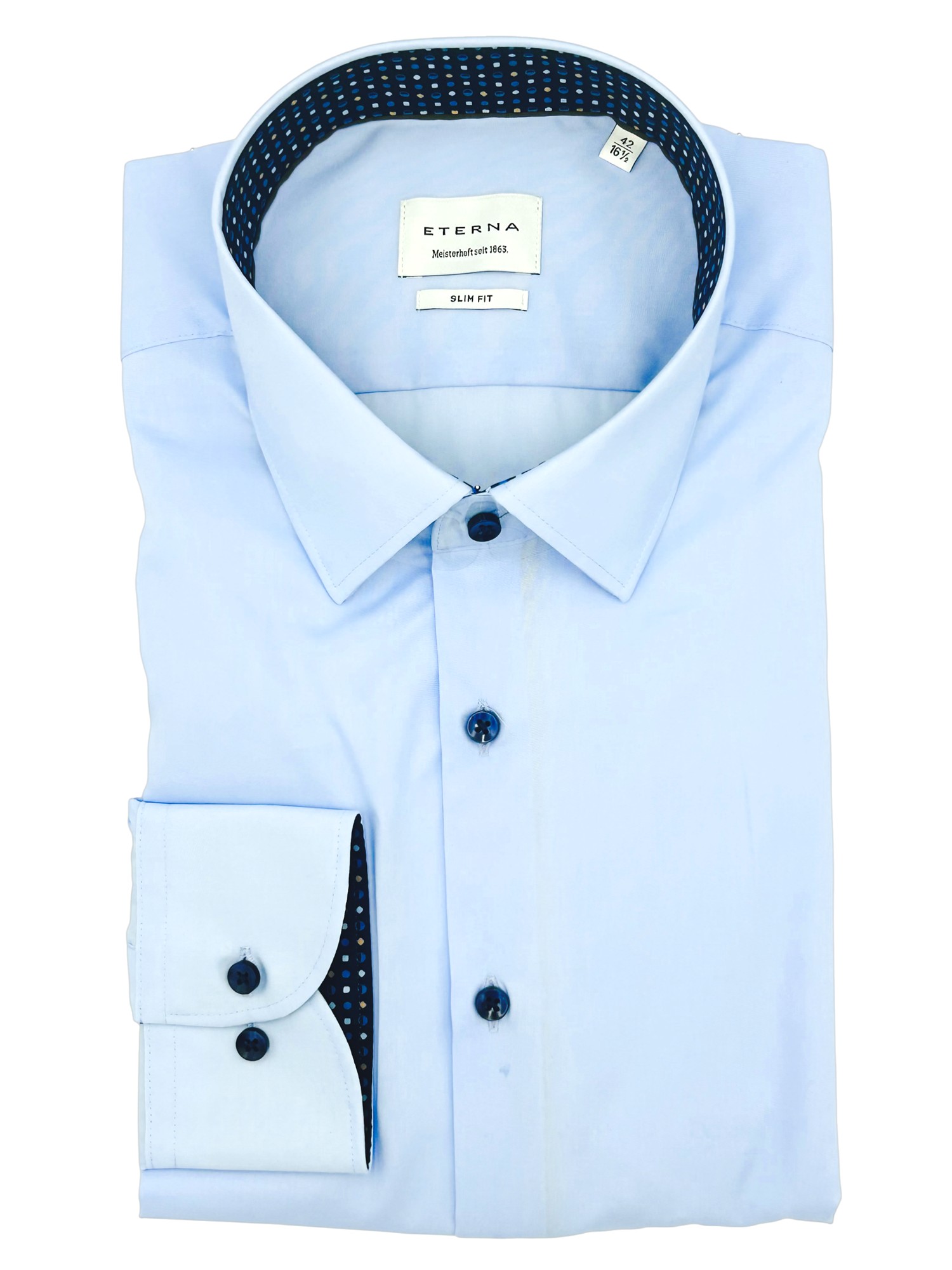 Eterna har siden de blev grundlagt i 1863 været kendt for deres gode kvalitet og ikke mindst deres ekceptionelle kvalitet. Eterna anvender bomuld og certificerede garner i deres skjorter og er derfor strygefrie. Alle Eternas skjorter er certificeret og produceret under de højeste Oeko-Tex standarder i Europa. Det betyder at samtlige skjorter er testet fri for en lang række giftige og miljøskadelige kemikalier. Eterna producerer deres skjorter i forskellige pasformer; Super Slim Fit, Slim Fit, Modern Fit og Comfort Fit - hertil fåes nogle skjorter med variende armlængde. Hos Bygholm Menswear har vi et bredt udvalg af Eterna til de allerbedste priser.