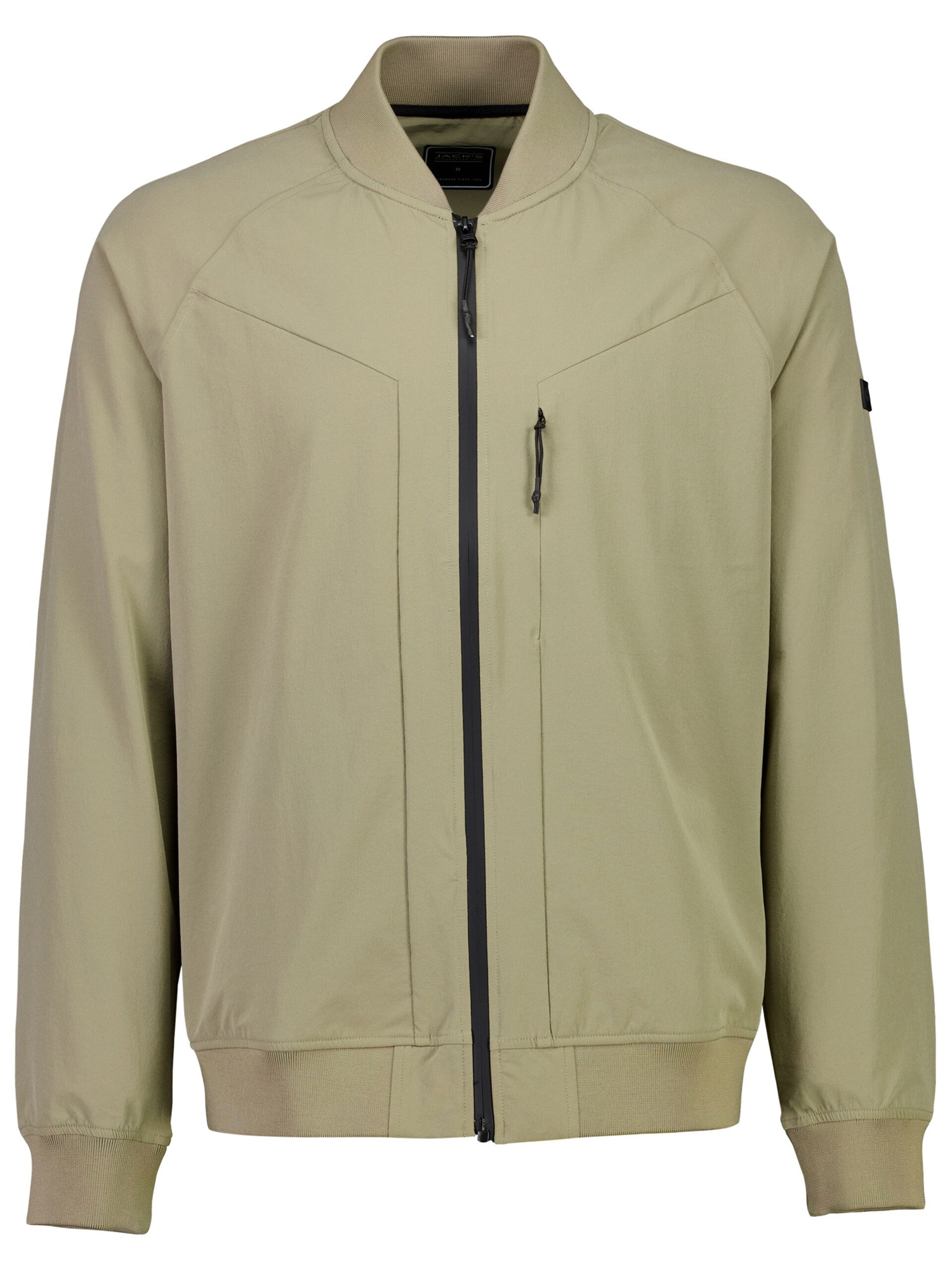 Anderledes bomberjakke fra Jack's med to sidelommer og en enkelt inderlomme, der alle lukkes med lynlås. Elastiske ribkanter nederst på ærmerne, på selve jakken og i kraven. Logo på venstre ærme.