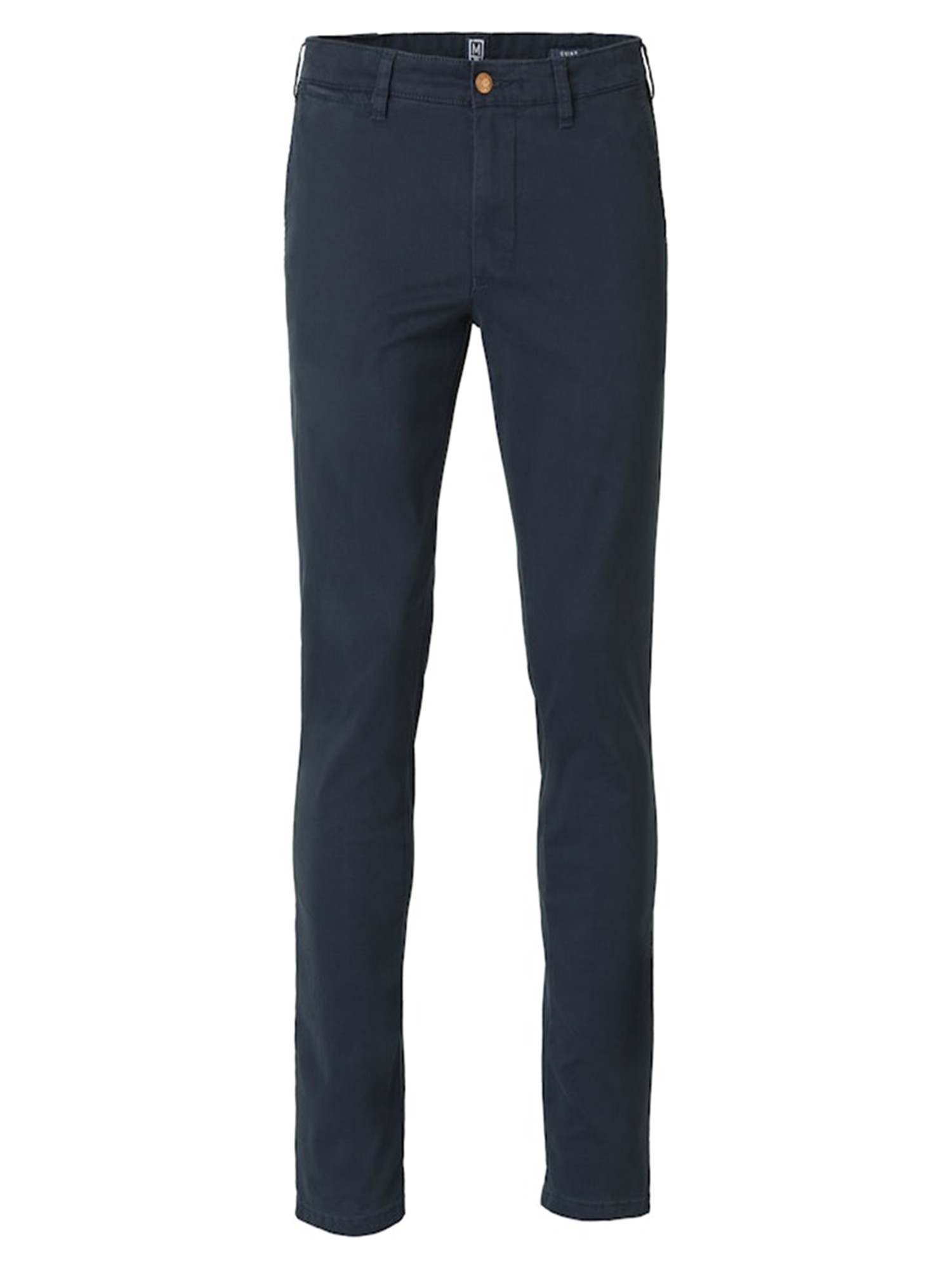 Disse M|5 chinos er et must i enhver mands garderobe. Farven er klassisk blå og er både bløde og behagelige at have på. De gennemtænkte M|5 detaljer som dornstrop, logoknap, det flotte udførte inderfor og møntlommen gør disse chinos til et ægte Meyer M|5 bukser.