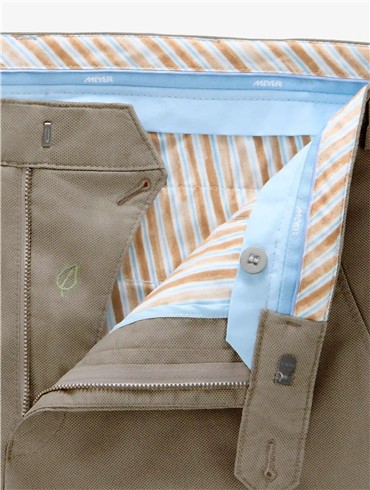 Meyer blev grundlagt i 1960 og har et konsekven krav: "Quality in every detail". Materialer af høj kvalitet, excellent pasform og de funktionelle detaljer gør et par Meyer bukser til noget udover det sædvanlige! Meyers mange års erfaring og deres sans for stil gør, at kunder verden over bliver ved med at købe Meyer bukser igen og igen. Alle Meyer bukser har en blød og behagelig overflade og alle jeans og bomuldsbukser forvaskes på Meyers eget specialvaskeri og krymper derfor ikke i vask efterfølgende. Hos Bygholm Menswear sælger vi et bredt udvalgt af Meyers buksekollektion og har du spørgsmål til pasform og størrelse er du mere end velkommen til at kontakte os.