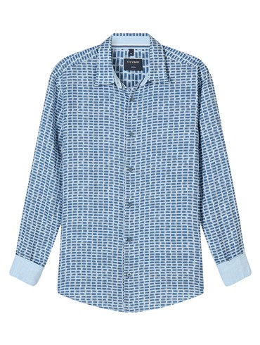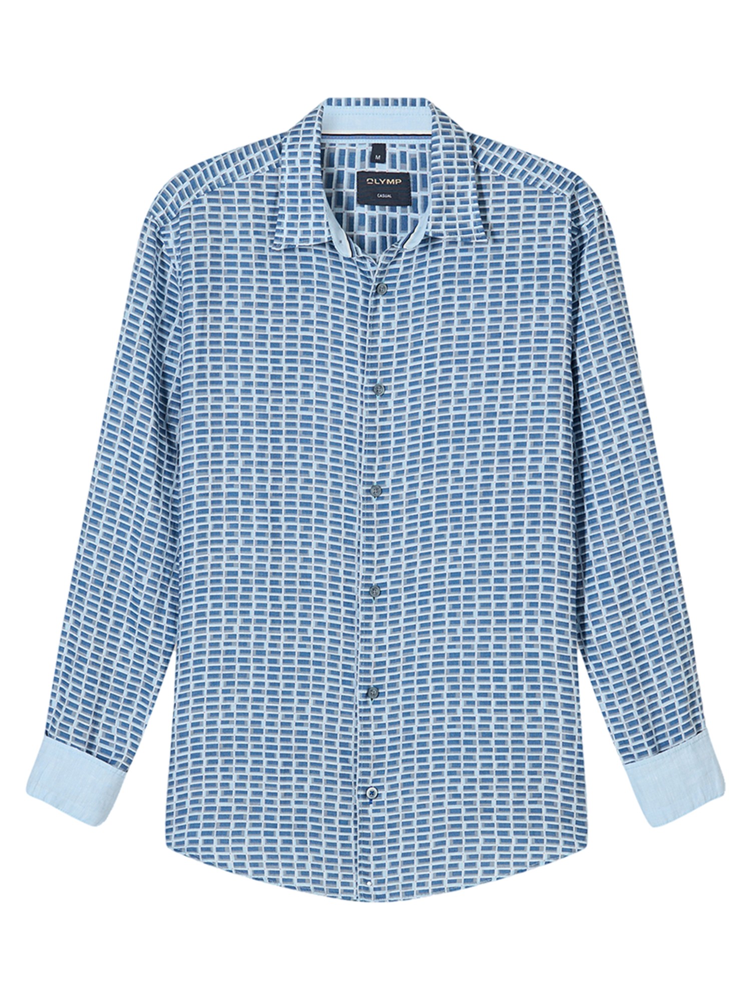 OLYMP BLÅ ENKEL MANCHET MODERN FIT SKJORTE ALMINDELIG FLIP