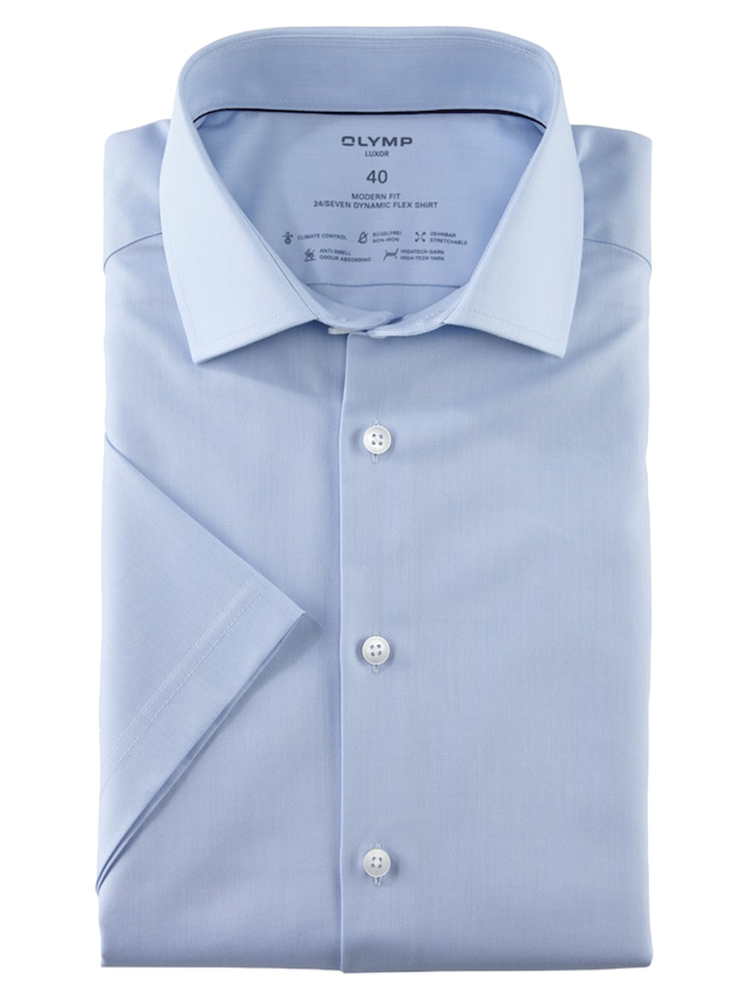 OLYMP LYSE BLÅ MODERN FIT KORTÆRMET SKJORTE