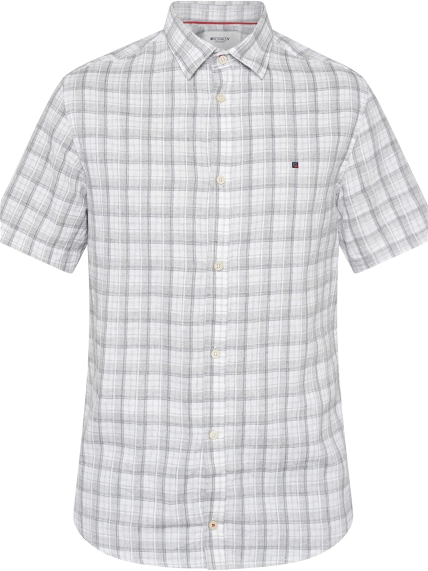 REDGREEN GRÅ REGULAR FIT KORTÆRMET SKJORTE ALMINDELIG FLIP