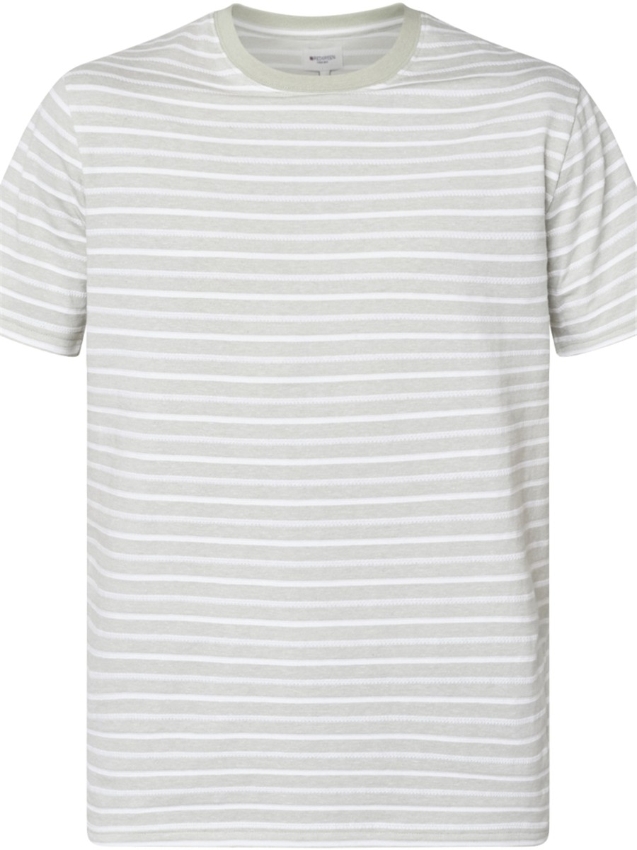 Afslappet herre-T-shirt i en blød bomuldsblanding med et klassisk stribet look. Let og behagelig, ideel til hverdagsbrug og afslappede sommeroutfits.