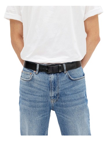 Læderbælte Montevideo fra Saddler. Klassisk jeansbælte i vegetabilsk garvet fuldnarvet læder, fremstillet i Italien. Bæltet har et flot spænde i en sort mat finish. Bær det med jeans for et stilfuldt, men afslappet look. Bæltet i størrelse 105 er designet med en skrue, der gør det muligt at forkorte og tilpasse størrelsen på bæltet.