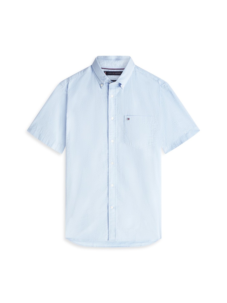 TOMMY HILFIGER LYSE BLÅ REGULAR FIT KORTÆRMET SKJORTE BUTTON-DOWN FLIP