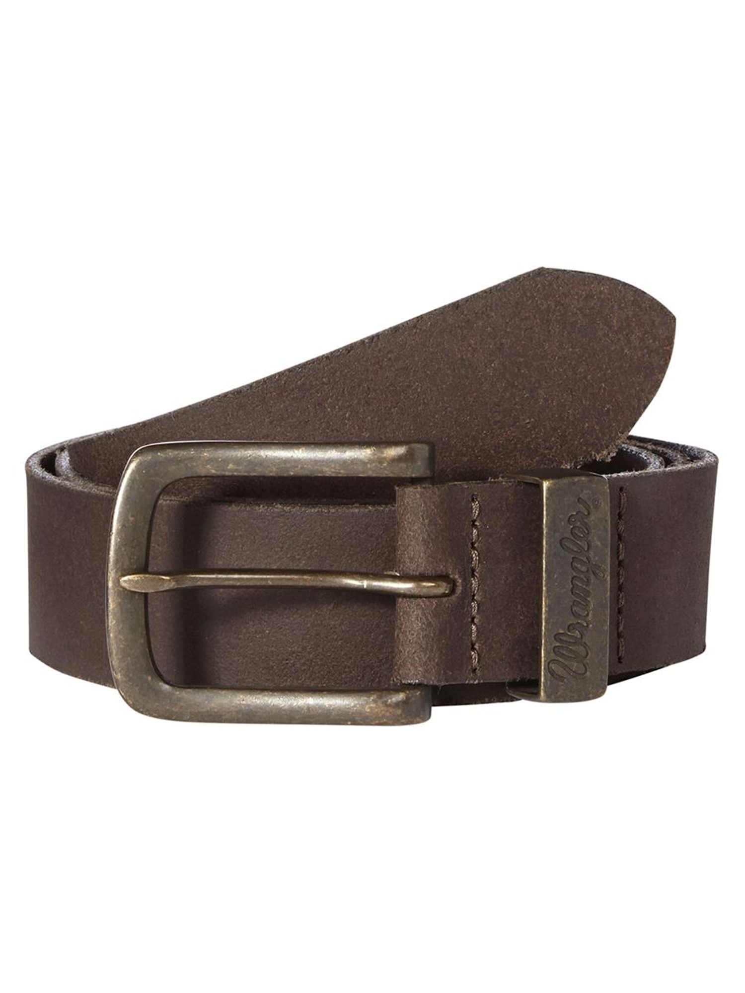 Pigmenteret split læder bælte, fra Wrangler, i brun med et enkelt pin spænde.